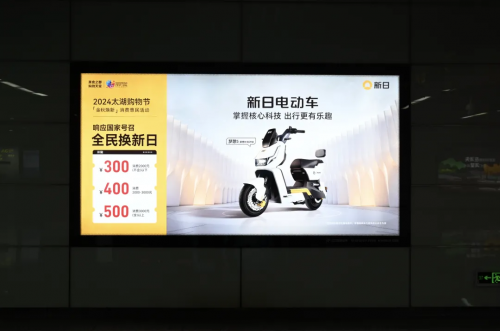 目前,國家正大力推動“以舊換新”政策落地,以激發市場綠色活力。而新日電動車作為全球領先的新能源出行方案制定者,始終積極響應國家號召,將激活大眾綠色消費熱情、倡導低碳出行方式融入企業發展的血脈。早在去年,新日便憑借高瞻遠矚的戰略眼光率先開啟市場全面部署。從本土無錫出發,“霸屏”城市地鐵全線,“以舊換新”活動實現了出行核心場景的全方位曝光。核心密集的廣告投放精準觸達了更多用戶群體,不斷按下換新政策落地的“加速鍵”。