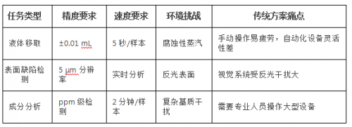 材料革新:采用仿生肌腱關節實現6小時高負荷作業,耐腐蝕涂層提升試劑環境適應性。