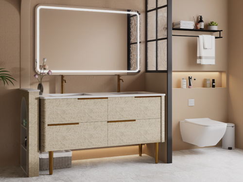 Lamett樂邁石晶隨即加大研發力度,在2024年推出全球首款石晶柜板,此后相繼推出石晶樓梯、石晶一體盆、石晶浴室柜、石晶大家居空間等,將石晶“一材多用”的性能特色發揮得淋漓盡致。其研發推出的石晶衛浴櫥柜產品,即使在長期接觸水分的環境下也能保持穩定性能,有效延長櫥柜使用壽命。