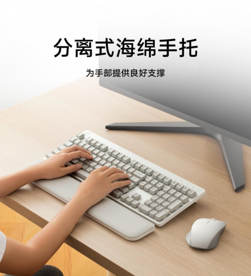 無(wú)需燒腦拼湊,小米無(wú)線鍵鼠套裝舒適版為用戶提供了完整的鍵鼠解決方案。鍵盤附帶分離式PU材質(zhì)手托,可自由擺放位置為手部提供支撐,表面觸感細(xì)膩柔美,內(nèi)部填充高彈性海綿,提供恰到好處的支撐力,確保為手部提供最自然放松的生理中立姿勢(shì)。生物力學(xué)與材料科學(xué)的碰撞融合,支撐度、舒適感完美契合,顯著降低腕部勞損風(fēng)險(xiǎn),為健康辦公多一份貼心守護(hù)。