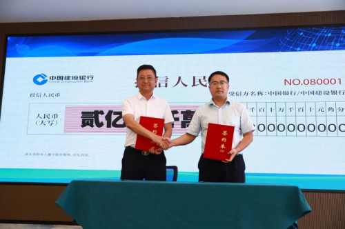 儀式的第一個高潮來臨——中國建設銀行嵊州支行現場授予公司2.8億元人民幣的授信額度! 在全體嘉賓的見證下,嵊州支行副行長張圓鋒先生與公司常務副總裁楊滿意先生鄭重簽署合作協議。這不僅是金融機構對公司發展前景的高度認可,更是為公司發展注入了堅實的金融活水。
