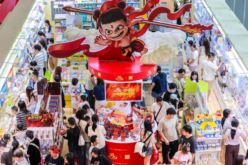 開幕首日,全國十余個(gè)城市超級(jí)文具節(jié)首波同時(shí)開業(yè),線下主題店前消費(fèi)者排起長隊(duì),重磅首發(fā)的電影《哪吒之魔童鬧海》聯(lián)名中性筆、筆袋、筆記本等多款新品,開幕當(dāng)天即被粉絲火熱圈粉,守護(hù)甜心主題吧唧、排球少年主題包袋等也成為“斷貨王”。