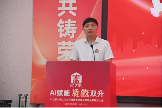 核心提示:2025年8月1日,81之家隆重召開“2025/2026年度教學(xué)質(zhì)量與服務(wù)品質(zhì)提升大會(huì)”。2025年8月1日,81之家隆重召開“2025/2026年度教學(xué)質(zhì)量與服務(wù)品質(zhì)提升大會(huì)”。本次會(huì)議旨在深入探討以AI技術(shù)驅(qū)動(dòng),賦能教學(xué)革新。會(huì)議集智攻關(guān)、集思廣益,聚力提升AI背景下為軍教育服務(wù)質(zhì)量體系。中國退役軍人就業(yè)創(chuàng)業(yè)服務(wù)促進(jìn)會(huì)理事長王義出席活動(dòng)并講話;81之家創(chuàng)始人李貞文發(fā)表主旨演講。81之家專家教授、合作伙伴及總部員工百余人齊聚一堂,共同擘畫81之家匠心教育服務(wù)事業(yè)發(fā)展的嶄新藍(lán)圖。
