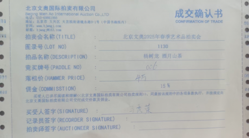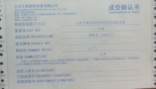 楊樹龍老師創作的美術書法作品在北京成功拍賣