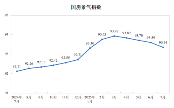 7月份,房地產開發景氣指數(簡稱“國房景氣指數”)為93.34。