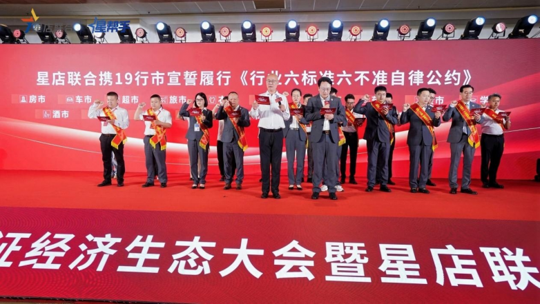 隨即,在星店聯合首席執行官劉鴻巖、執行總裁董文斌的率領下,星店聯合19行市全體代表登臺,在全場矚目下,莊嚴宣誓,彰顯了星店聯合及19行市對公約的堅定信念與履行決心。
