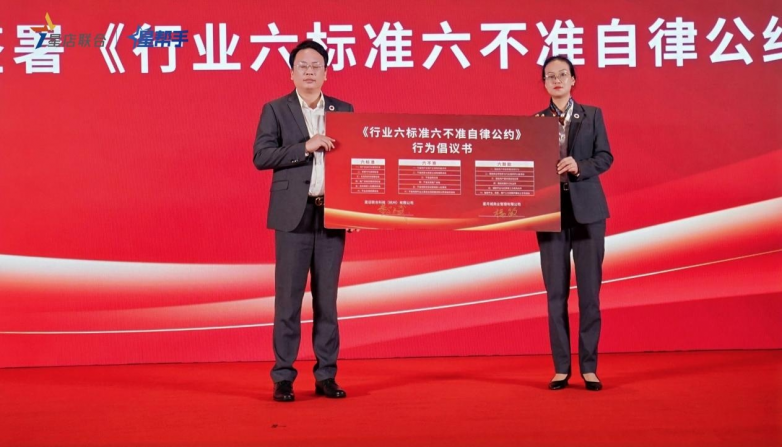 在中商會商家通證經濟工作委員會成立之際,星店聯合科技(杭州)有限公司與星月城商業管理有限公司共同簽署《行業六標準六不準自律公約》行為倡議書,星店聯合執行總裁董文斌先生與星月城代表楊敏女士代表雙方鄭重簽約。此舉標志著星店聯合以行動踐行承諾,通過推動“六準六不準”行業標準的落地,為商家積分的合規運營樹立新標桿。星店聯合始終以引領行業健康發展為己任,此次聯合倡議不僅彰顯了企業責任擔當,更將攜手行業伙伴共同構建規范、透明、高效的商家積分生態,以誠信基石賦能商業未來,書寫“星耀征途,商聚新篇”的嶄新篇章。