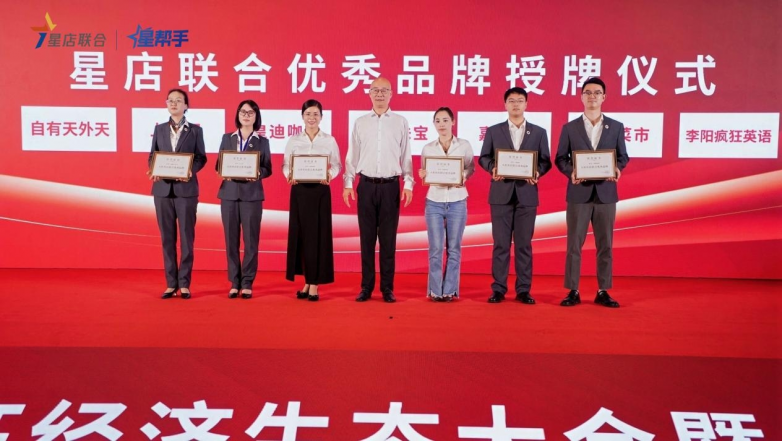 隨后,星店聯合首席執行官劉鴻巖為自有天外天、皇迪咖啡、迪諾珠寶、嘉家鮮、華商菜市、李陽瘋狂英語等優秀品牌頒發授牌,授牌不僅表彰了對商家通證經濟生態建設的突出貢獻,彰顯星店聯合生態內“品質與創新”的核心價值導向,也進一步強化了平臺與優質品牌的共生紐帶,為行業持續注入發展動能。