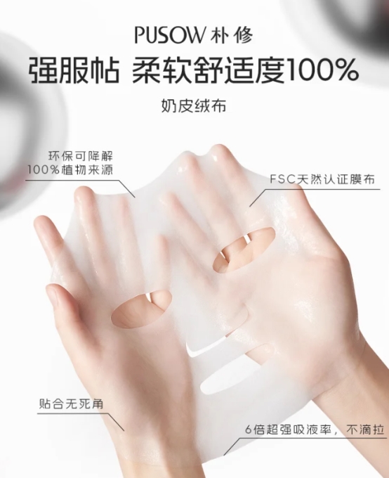 除了功效與安全,PUSOW 樸修更在細(xì)節(jié)處體現(xiàn) “愉悅護(hù)膚” 的理念:面膜采用 FSC 天然認(rèn)證的奶皮絨布膜布,6 倍吸液率不滴拉、貼合無死角,且環(huán)保可降解;使用時(shí)只需清潔面部后敷 15 分鐘,摘下后按摩剩余精華吸收即可安睡,免洗設(shè)計(jì)精準(zhǔn)擊中 “懶人護(hù)膚” 需求。為打消消費(fèi)者顧慮,品牌還推出 “7 天不拆封無理由退換 + 1 片試用裝 + 過敏包退” 的權(quán)益保障,讓大家能 “無壓力體驗(yàn)新國貨的實(shí)力”。