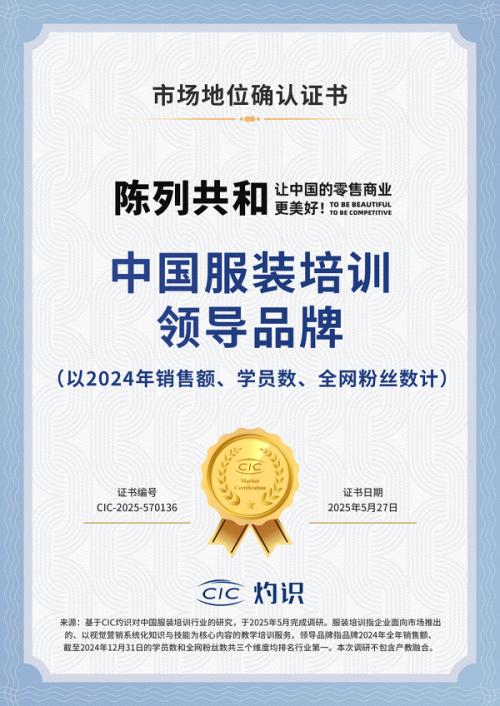 陳列共和榮獲CIC灼識(shí)認(rèn)證——“中國(guó)服裝教育領(lǐng)導(dǎo)品牌”!
