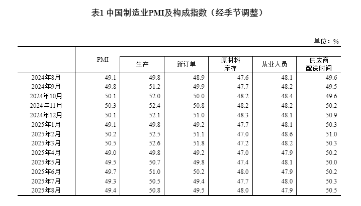 核心提示:2025年8月中國采購經理指數運行情況國家統計局服務業調查中心中國物流與采購聯合會 一、中國制造業采購經理指數運行情況 8月份,制造業采購經理指數(PMI)為49.4%2025年8月中國采購經理指數運行情況