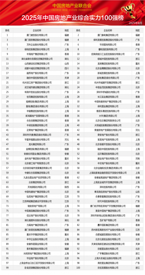 2025中國房地產(chǎn)業(yè)綜合實(shí)力100強(qiáng)榜單重磅發(fā)布,行業(yè)格局再掀波瀾