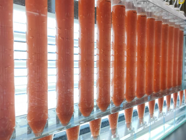 綠A始終將科技創(chuàng)新視為企業(yè)發(fā)展的核心動(dòng)力。經(jīng)過數(shù)十年的深耕,在藻種選育、養(yǎng)殖工藝、提取技術(shù)、應(yīng)用研發(fā)等核心環(huán)節(jié)累計(jì)獲得42項(xiàng)國(guó)家專利。其中,部分專利技術(shù)對(duì)產(chǎn)業(yè)化發(fā)展起到非常關(guān)鍵作用。如“一步法”雨生紅球藻養(yǎng)殖專利技術(shù),突破國(guó)際傳統(tǒng)技術(shù)瓶頸,極大提高紅球藻的生長(zhǎng)效率和蝦青素的積累量,為提取高品質(zhì)蝦青素油奠定基礎(chǔ);“超臨界二氧化碳萃取技術(shù)”使蝦青素純度和穩(wěn)定性等核心技術(shù)指標(biāo)遠(yuǎn)超歐美標(biāo)準(zhǔn),使得國(guó)產(chǎn)蝦青素產(chǎn)品品質(zhì)達(dá)到世界領(lǐng)先水準(zhǔn)。