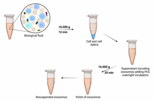 該方法操作簡單,時間短,通常低于4小時,無需昂貴設備,適用于實驗室常規分離,適合大體積樣本,如血清、尿液等。目前大多數快速分離外泌體的商品化試劑盒都是基于此方法開發,如ExoQuick、TEI等。