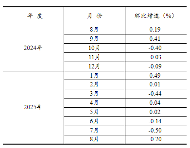 根據季節調整模型自動修正結果,對2024年8月份以來的固定資產投資(不含農戶)環比增速進行修訂。修訂結果及2025年8月份環比數據如下: