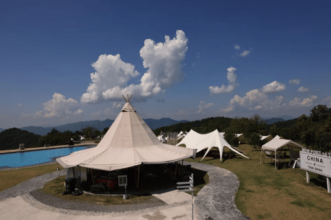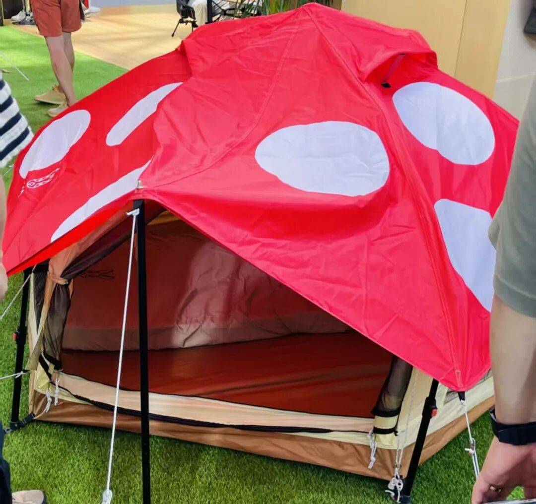 義烏市宣聞戶外用品有限公司總經理朱悅來還推出了蘑菇帳篷。一片草坪上,一個個帳篷搭在那里,無人機拉起來就像這座山上的一片自然長大的蘑菇。