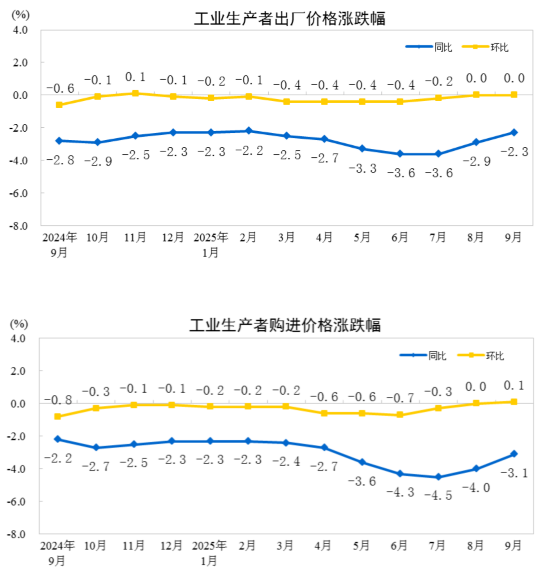 2025年9月份工業生產者出廠價格同比降幅繼續收窄