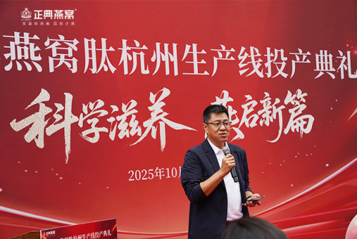 核心提示:2025年10月16日,正典燕窩肽杭州生產線投產儀式在杭州市錢塘區綜保錢誠創新中心隆重舉行。此次投產儀式以“科學滋養·燕啟新篇”為主題,標志著正典燕窩由傳統制造向“智造+科研”升級,開啟以生物科技驅動的中式滋補現代化新篇章。2025年10月16日,正典燕窩肽杭州生產線投產儀式在杭州市錢塘區綜保錢誠創新中心隆重舉行。此次投產儀式以“科學滋養·燕啟新篇”為主題,標志著正典燕窩由傳統制造向“智造+科研”升級,開啟以生物科技驅動的中式滋補現代化新篇章。正典燕窩董事長譚承哲、總經理溫艷、副總經理兼研發負責人何志偉博士出席儀式。儀式上,中國食品工業協會燕窩及膠類蛋白食品工作委員會王強會長、中國質量檢驗檢測科學研究院孫利博士、廣東省燕窩產業協會張雅琴會長、康復大學生命科學與健康學院張英慧教授、杭州綜保辦劉可嘉主任、杭州市錢塘區市場監督管理局黨委書記、局長田曉祥,以及行業合作伙伴、媒體共同見證了這一里程碑。
