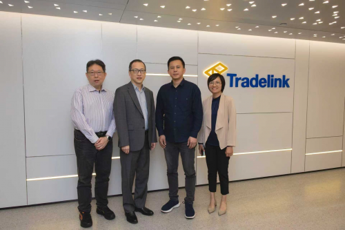 (從左到右:貿易通執(zhí)行董事兼營運總監(jiān)鄭俊聰先生、貿易通執(zhí)行董事兼行政總裁袁民忠先生S.B.S.、法大大創(chuàng)始人兼CEO黃翔先生、法大大高級副總裁兼COO林希婧女士)