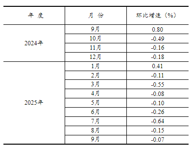 根據季節調整模型自動修正結果,對2024年9月份以來的固定資產投資(不含農戶)環比增速進行修訂。修訂結果及2025年9月份環比數據如下: