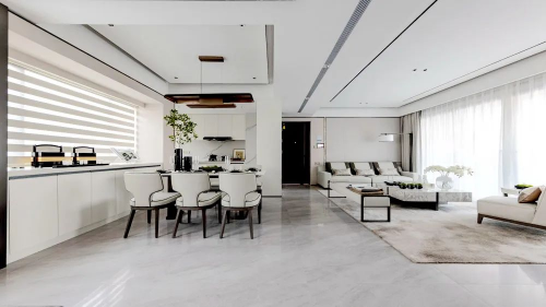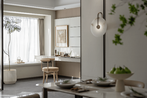 而餐廳可與旁邊的書房打通,形成一邊就餐,一邊飯后喝茶的空間,房子使用率和空間感得到大跨度提升。