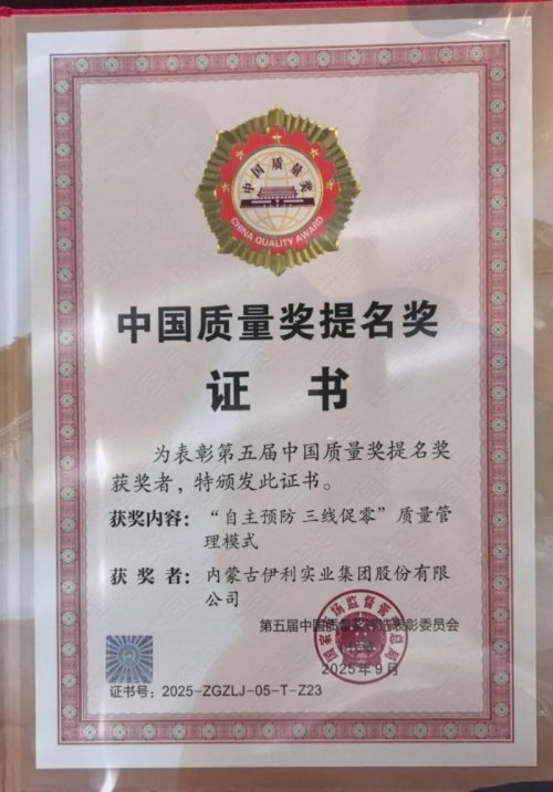 核心提示:近日,第五屆中國質量獎獲獎名單正式公布,伊利憑借“‘自主預防 三線促零’質量管理模式”榮獲第五屆中國質量獎提名獎。近日,第五屆中國質量獎獲獎名單正式公布,伊利憑借“‘自主預防 三線促零’質量管理模式”榮獲第五屆中國質量獎提名獎。充分展現了伊利在產業布局、品質管理及技術創新方面的強大實力。值得一提的是,伊利股份是連續三屆(第三、四、五屆)斬獲中國質量獎提名獎的乳企,這一成就彰顯了伊利股份在質量管理方面的持續領先地位。