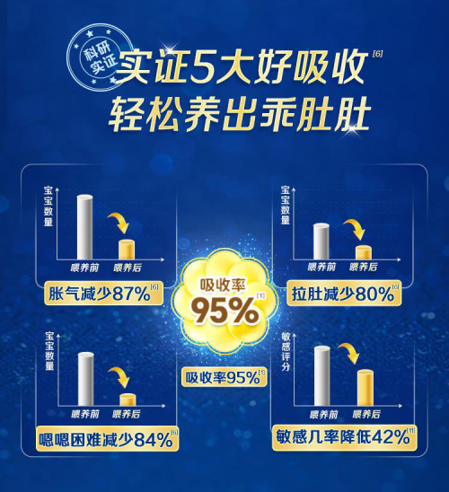 前文提到的佳貝艾特悅白,就擁有經科研實證的十大喂養效果,光是從吸收層面看,其就具有脹氣減少87%,拉肚減少80%、嗯嗯困難減少84%等多個喂養實證,此外,佳貝艾特還聯合北京大學醫學部,通過臨床喂養證實喝佳貝艾特悅白的寶寶在喂養后敏感幾率降低42%。由此可以看出,佳貝艾特悅白是真正能幫助解決寶寶成長重難點、呵護寶寶健康成長的優質產品。