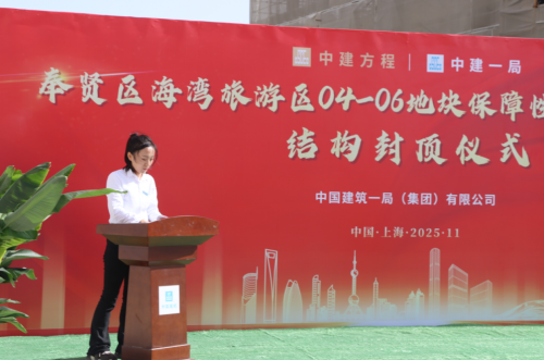 致辭環節中,上海怡華公寓有限公司總經理趙星焱上臺分享了項目建設的初心與愿景,深刻詮釋了 “住有所居、住有宜居” 的民生核心理念,為項目后續的推進明確了方向、凝聚了共識。作為施工單位代表,中建一局華北公司副總經理田慧則深情講述了這支新中國第一支建筑 “國家隊” 的責任擔當與堅守。七十余載風雨兼程、深耕細作,中建一局始終秉持 “品質保障、價值創造” 的核心價值觀。此次承接該項目后,面對工期緊、任務重、施工協調復雜等諸多挑戰,項目團隊以精細管理嚴控每一個環節,以精湛工藝雕琢每一處細節,最終圓滿達成主體封頂的關鍵目標,用實打實的實力詮釋了精益求精的 “工匠精神”。