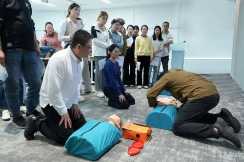 在活動起點,專業導師現場演示AED使用技巧,參與者們認真聆聽、積極互動。現場實操環節,大家輪流在模擬人偶上練習心肺復蘇,每一個規范動作的背后,都是一份對生命的珍視。