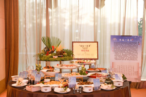 一桌珍饈,鮮聚清遠(yuǎn)。“清遠(yuǎn)一桌菜”推介環(huán)節(jié),來(lái)自清遠(yuǎn)八大縣(市、區(qū))的特色佳肴集中亮相,都是“農(nóng)產(chǎn)精華+匠心烹飪”的完美融合。其中,菜品亮點(diǎn)迭出:《金玉滿堂》,甘醇清香,潤(rùn)燥生津;《鳳鳴清遠(yuǎn)》,外皮金黃、內(nèi)里鮮嫩;《豐年余韻》,以稻草慢煨,外皮焦香,肉質(zhì)緊實(shí)多汁;《碧波凌云》,清蒸留味,鮮甜交融;《瑤寨雙珍》,鄉(xiāng)土煙火氣與山鮮食材完美融合;《吉羊獻(xiàn)瑞》,肉質(zhì)不膻不膩,回味悠長(zhǎng);《茶香兜福》,茶韻清香層層滲透,入口滑嫩;《錦繡合歡》,肉香滿溢,層次分明;《碧水生財(cái)》,以山泉水烹煮,保留菜心的清甜脆嫩;《豐登報(bào)喜》,絲苗米米香濃郁,臘味油香四溢;《春意滿囊》,咸甜鮮味,獨(dú)一無(wú)二。一桌珍饈,完美詮釋著“清遠(yuǎn)一桌菜,道道有真味”。
