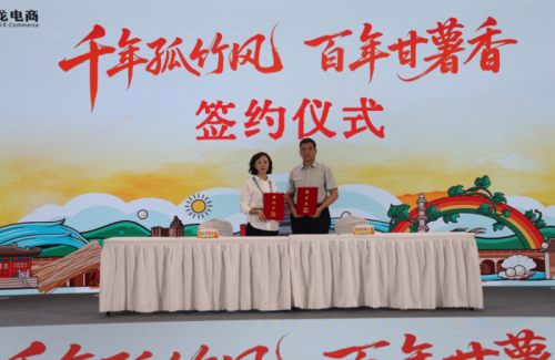 在簽約儀式上,盧龍縣人民政府、河北中薯農業科技有限公司、盧龍縣清喜生態農業有限公司分別與相關公司就《盧龍縣農特品專項促消費活動項目》《盧龍縣甘薯鮮濕粉生產項目》《盧龍甘薯種植基地合作項目》進行了簽約。