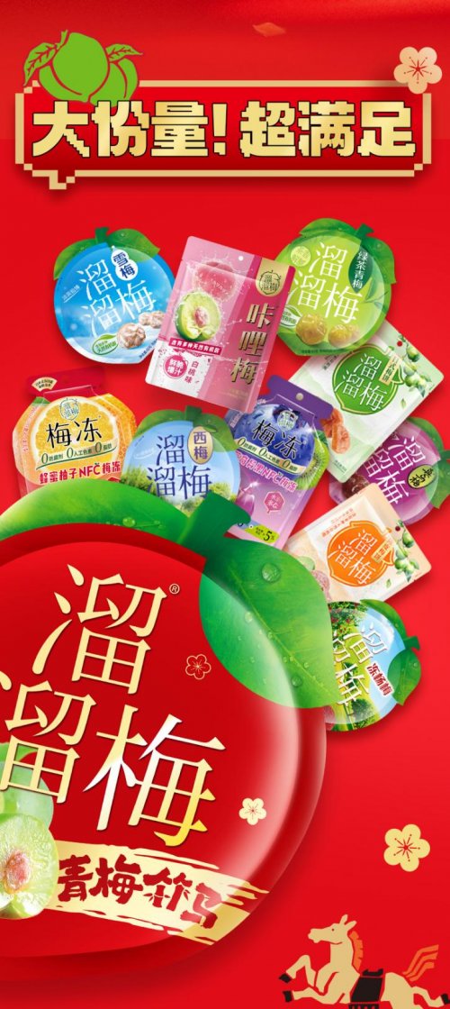 目前,溜溜梅2026新年系列已登陸淘寶、抖音、京東等線上平臺,線下商超同步開售!新年囤貨、親友送禮、聚會分享……讓溜溜梅的鮮爽滋味,陪伴你度過每一個溫馨團圓的時刻吧!