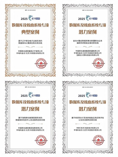 在此次評選中,“基于遼寧移動電子運維系統(tǒng)的數(shù)據(jù)庫RAC集群創(chuàng)新應(yīng)用實踐”獲評“數(shù)據(jù)庫及核心系統(tǒng)專項——典型案例”。“金倉AI融合數(shù)據(jù)庫推動新疆移動業(yè)務(wù)編排系統(tǒng)智能運維創(chuàng)新實踐”、“基于海南移動故障管理系統(tǒng)的數(shù)據(jù)庫異地雙中心雙活架構(gòu)創(chuàng)新實踐”、“基于杭研院IOT系統(tǒng)的智能應(yīng)用遷移評估以及雙活架構(gòu)創(chuàng)新實踐”獲評“數(shù)據(jù)庫及核心系統(tǒng)專項——潛力案例”。