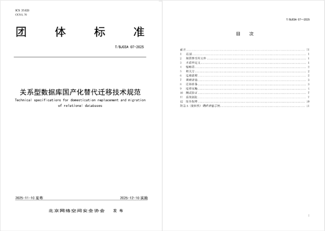 值得一提的是,雙方牽頭編制《關系型數據庫國產化替換遷移技術標準》,將遷移調研評估、遷移準備、遷移實施、測試驗證、系統割接、服務保障六大階段納入標準化管控體系。該標準已以團體標準形式由北京網絡空間安全協會發布(標準編號:T/BJCSA 07-2025),為國內企業開展國外關系型數據庫向國產關系型數據庫的遷移工作提供了參考依據。