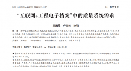 基于項目研究,課題組成員撰寫的論文《互聯網+工程電子檔案中的質量系統需求》已于2025年11月在《蘭臺世界》雜志發表。
