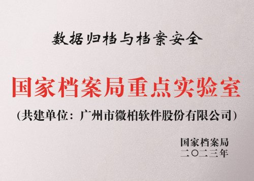 2023年,微柏軟件聯合中山大學、廣東省檔案館、廣州市城市建設檔案館等單位共建“數據歸檔與檔案安全國家檔案局重點實驗室”。