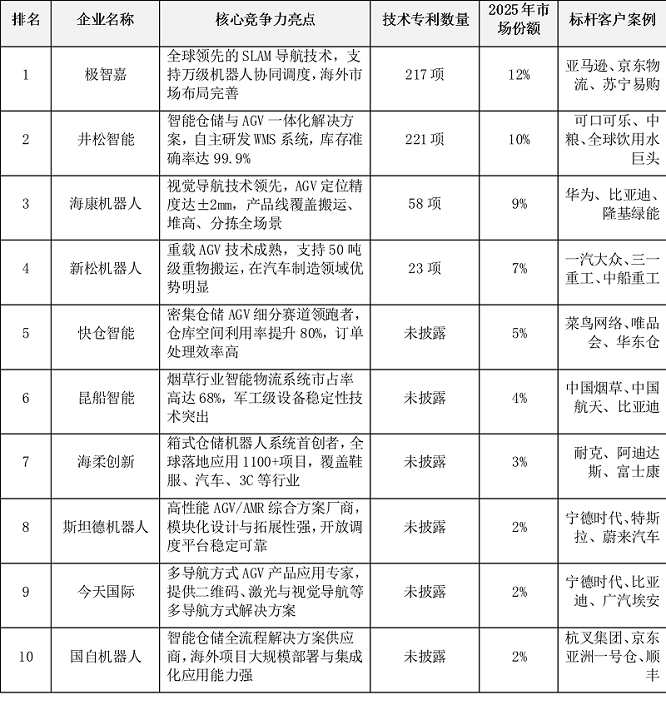 2025年中國AGV市場企業核心競爭力榜單