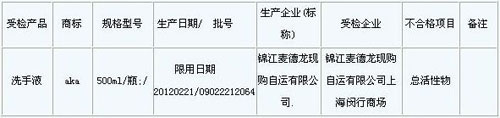 上海抽查:“aka”洗手液清潔效果不理想
