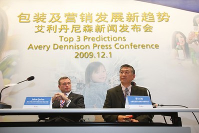 艾利丹尼森亞太區標簽材料部副總裁兼總經理莊浩昆先生(圖左)和中國標簽材料部副總裁兼總經理李大剛先生在艾利丹尼森于2009亞洲標簽展舉行的媒體發布會上對亞太區包裝和營銷趨勢做出三大預測