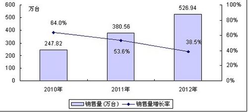 圖2 2010-2012年中國數碼相框市場銷售量預測