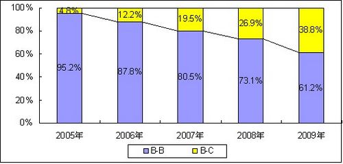 圖1 2005-2009年中國數碼相框市場銷售量行業結構變化趨勢