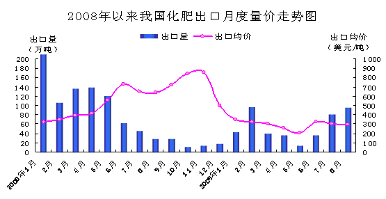 (五)磷酸氫二銨出口大幅增長,尿素出口大幅下降。1-8月我國出口磷酸氫二銨131.7萬噸,增長94.2%;出口尿素124.3萬噸,下降69.7%,上述兩者合計占同期我國化肥出口總量的57.2%。