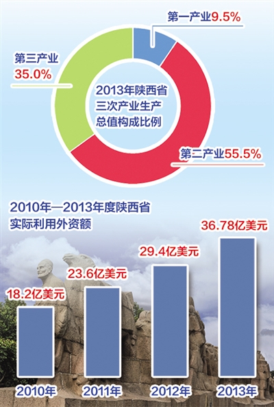 陜西對于“絲綢之路經濟帶新起點”的定位是,溝通內陸與亞歐大陸橋和海上絲綢之路的交通樞紐、承接東部乃至全球產業轉移的有利區域、絲綢之路經濟帶最大的物流中心、融匯亞歐豐富多元文化的重要平臺。