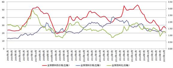 IFCN全球原料奶價格、飼料價格及奶料比2006.01~2015.11