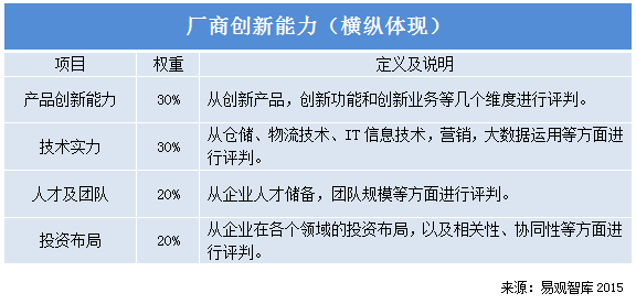 易觀智庫選取如下維度對廠商現有資源進行研究。