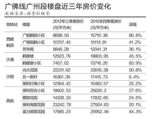 廣佛線地鐵盤房價三年最高上漲84%