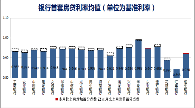 核心提示: 在當前,樓市去庫存壓力增大,銀行貸款競爭加大的背景下,加大房貸利率折扣仍是大勢所趨。主要銀行平均利率折扣:匯豐銀行最低圖 主要銀行首套房利率折扣均值融360監在當前,樓市去庫存壓力增大,銀行貸款競爭加大的背景下,加大房貸利率折扣仍是大勢所趨。