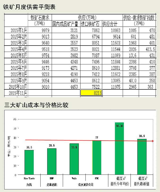 由此分析,2015年鐵礦石價格持續下跌,目前已經至成本線附近。2015年底2016年初,鐵礦石價格可能在成本線附近徘徊或小幅反彈,但趨勢性下跌難以改變。就鐵礦石生產成本和市場大勢之間的博弈來看,最終還是市場決定價格。