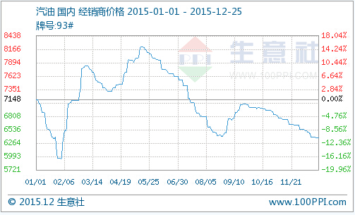 生意社大宗榜數(shù)據(jù)顯示,2015年國內(nèi)成品油市場價(jià)格寬幅震蕩,振幅達(dá)到15%。主營汽油年末均價(jià)在6368元/噸,較年初下跌10.92%;主營柴油年末均價(jià)5553元/噸,較年初下跌12.35%。