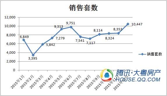 核心提示: 送別2015年,迎來2016年,廣州樓市在去年底明顯回暖,整體量價齊漲。據騰訊房產監控陽光家緣數據,2015年12月廣州全市新建商品住宅共成交10447套,環送別2015年,迎來2016年,廣州樓市在去年底明顯回暖,整體量價齊漲。據騰訊房產監控陽光家緣數據,2015年12月廣州全市新建商品住宅共成交10447套,環比上漲25.07%。12月全市新建商品住宅一手網簽均價16142元/平,環比微漲3.09%;網簽面積1,266,175平方米。